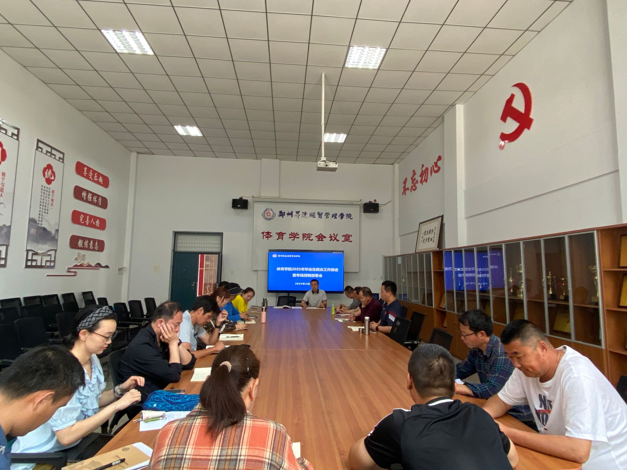 4月18日,一竞技召开2025届毕业生就业工作推进暨专场招聘部署会。学院领导班子成员、各教研室党支部书记、教研室主任、就业专员、毕业班辅导员参加会议。