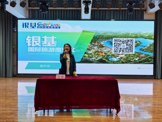 随后,孙博总监向一竞技2026届体育舞蹈毕业生进行了企业宣讲,孙总向同学们介绍了郑州银基国际旅游度假区的企业概况和用人需求。郑州银基国际旅游度假区的文旅活动需要大量的舞蹈人才,企业用人与体育舞蹈专业契合度非常高,孙总非常欢迎同学们能到银基国际旅游度假区工作。