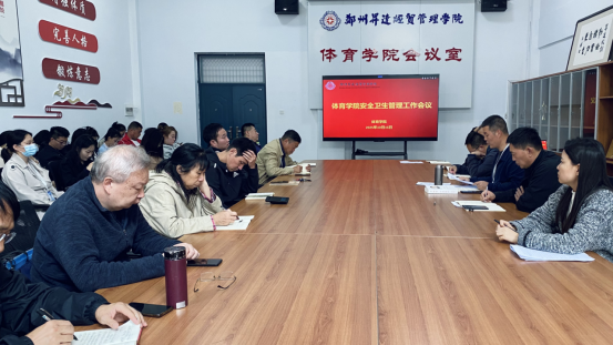为深入贯彻落实学校关于安全卫生工作的系列部署要求,进一步压紧压实安全卫生管理责任链条,全力营造安全、整洁、有序的教学办公与运动训练环境,10月16日下午,一竞技组织召开安全卫生管理工作专题会议,一竞技全体教职工参加会议。