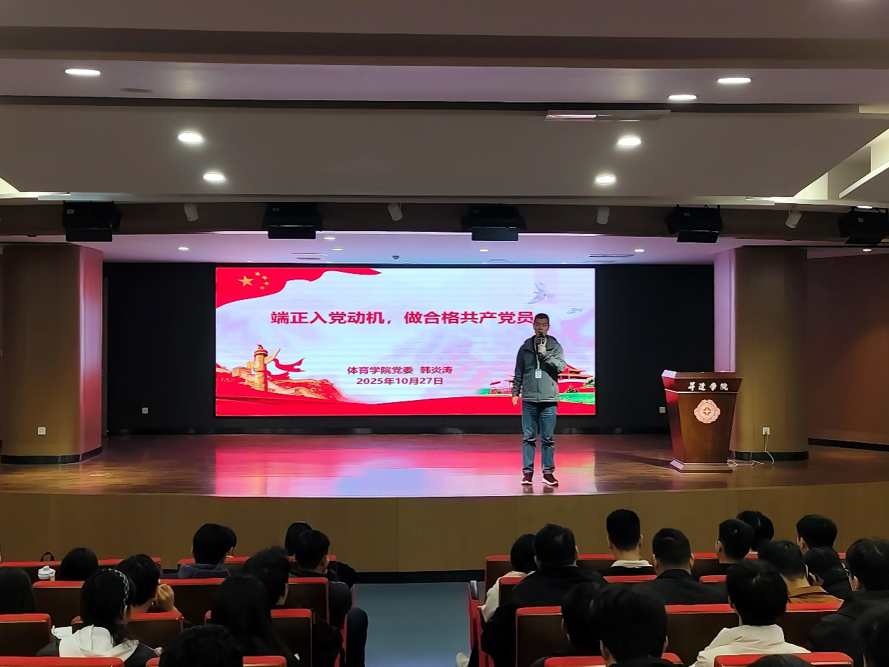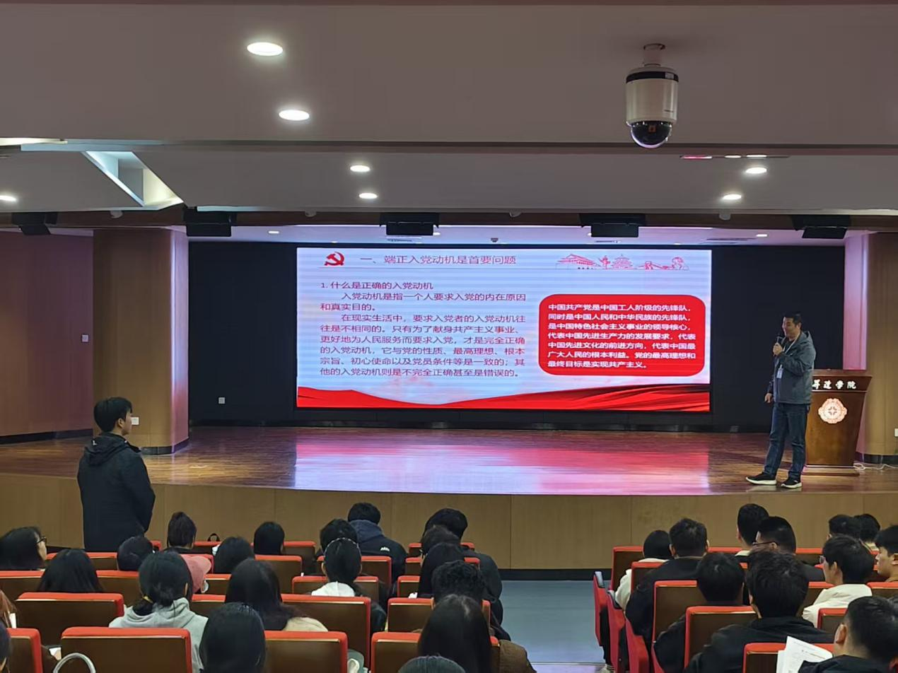 韩炎涛围绕从“端正入党动机,严格履行手续”与“践行‘四讲四有’,做合格共产党员”两大维度展开阐释,他指出,党员不仅要在组织上入党,更要首先在思想上入党。端正入党动机是首要问题,其内涵集中体现为三点:一要有为共产主义和中国特色社会主义事业奋斗终身的坚定信念;二要有全心全意为人民服务的思想;三要有在生产、工作、学习和社会生活中起先锋模范作用的觉悟。同时,要求大家要筑牢信仰强根基,把深刻领悟党的初心使命、坚定共产主义理想信念作为终身政治任务,树立“入党意味着付出和奉献”的觉悟,知行合一抓践行,以“讲政治、有信念,讲规矩、有纪律,讲道德,有品行,讲奉献,有作为”的“四讲四有”标准严格要求自己。要示范引领作表率,带头锤炼党性、廉洁自律,以实际行动带动身边同志共同进步,为学院发展注入红色动力。