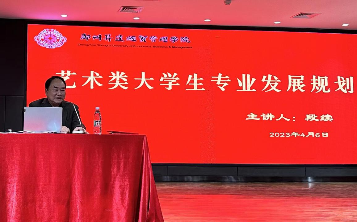 下午2点30分段续教授在双创大讲堂为公司国际标准舞专业的200师生进行了“艺术类老员工专业发展规划的报告。报告由体育舞蹈教研室主任栗元辉教授主持,栗教授为同学们介绍了段续教授在艺术领域取得的辉煌成就。段续教授是中国音乐家协会合唱联盟老员工合唱团联盟轮值主席,河南省学校艺术教育学会高校分会副会长,中国中央电视总台“中国器乐电视大赛”总决赛评委,韩国“报勋”国际舞蹈大赛评委,德国依姆伶歌剧节特邀艺术策划,原河南师范大学音乐舞蹈学院经理,现任郑州西亚斯学院音乐戏剧学院经理。